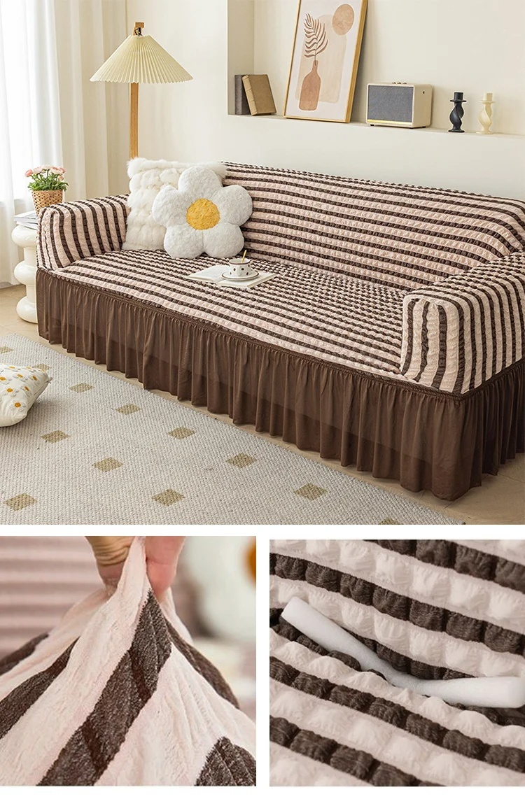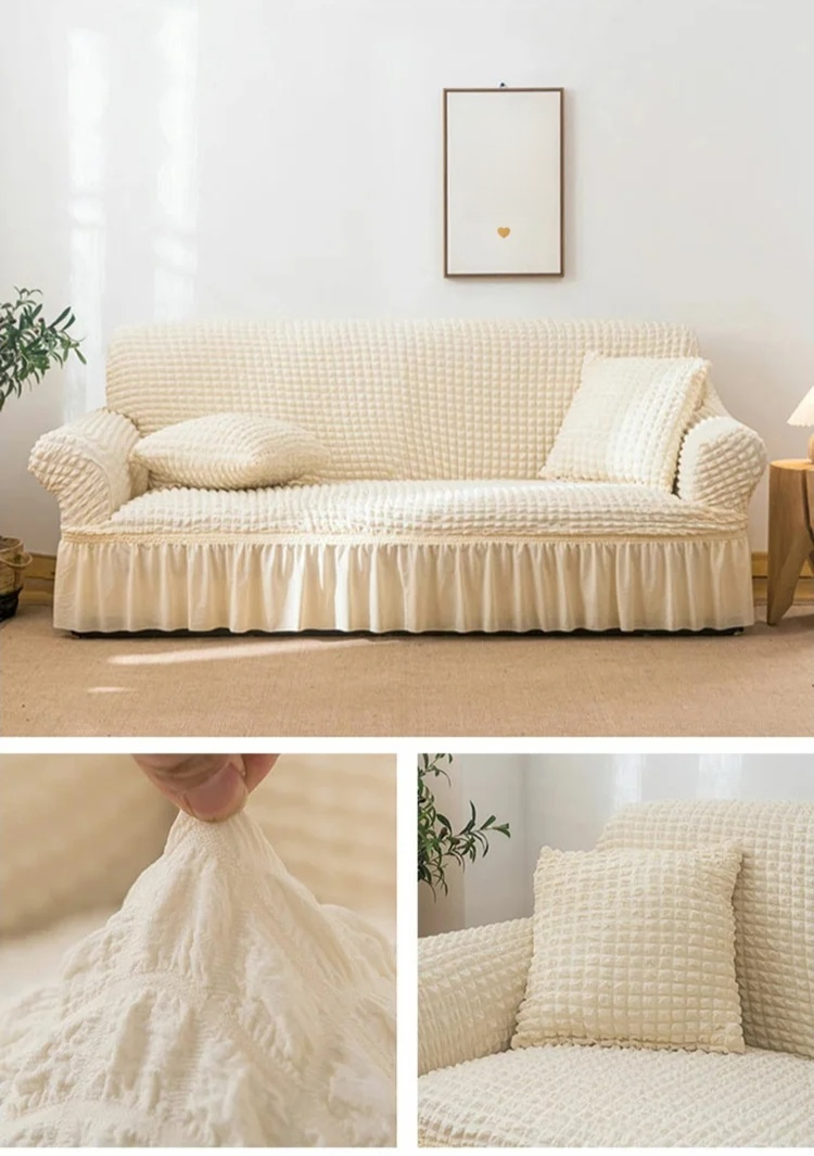 現代シンプルバブルガーゼソファカバー 全包みタイプ 滑り止め・ストレッチ素材